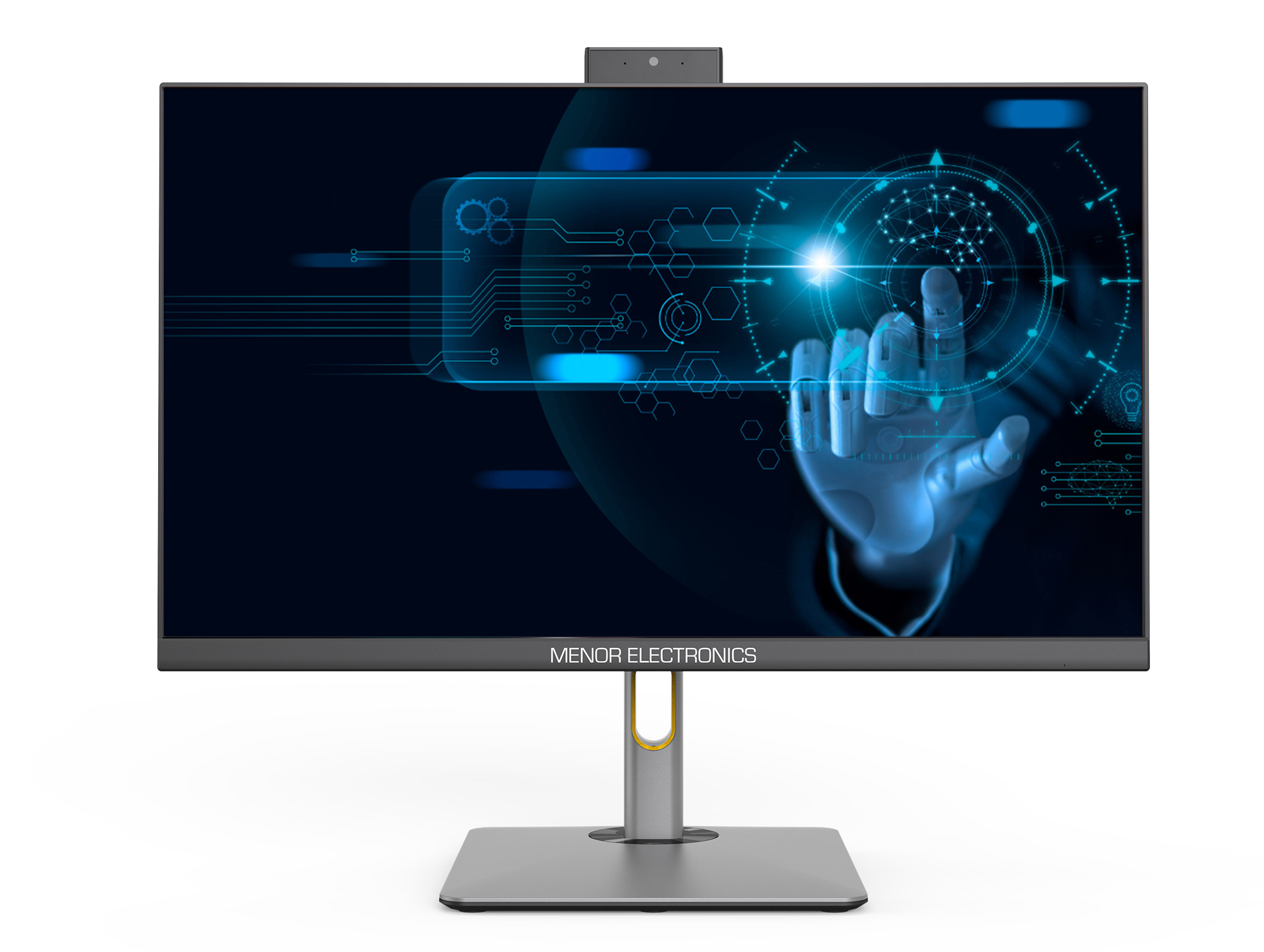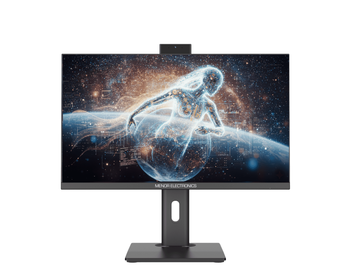 A tela ampla, envolta por uma moldura ultrafina, proporciona uma experiência imersiva, enquanto a base sólida oferece estabilidade, com um toque de elegância. A palete de cores em cinza e preto do All-in-One Celeste evoca um senso de serenidade e poder, destacando-se em qualquer ambiente.